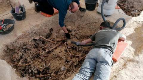 Els arqueòlegs estan delimitant en aquests moments el perímetre de les dues fosses, una de les quals es trobava coberta de calç. Les dues fosses mantenen les mateixes dimensions que es varen observar en les descobertes l’any 2016. A l’interior s’hi han localitzat les restes d’individus enterrats en posicions no ortodoxes, que contrasten amb els enterraments cristians que hi ha al seu costat.