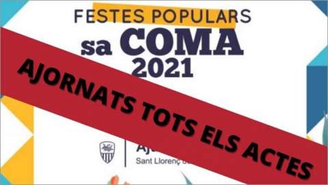 A causa de la situació i incidència actual de Covid-19 l'Ajuntament ha pres la decisió de seguir en la línia preventiva i suspendre alguns dels esdeveniments programats a partir de demà, 14 de juliol i fins al diumenge, dia 18, de les Festes Populars de sa Coma.