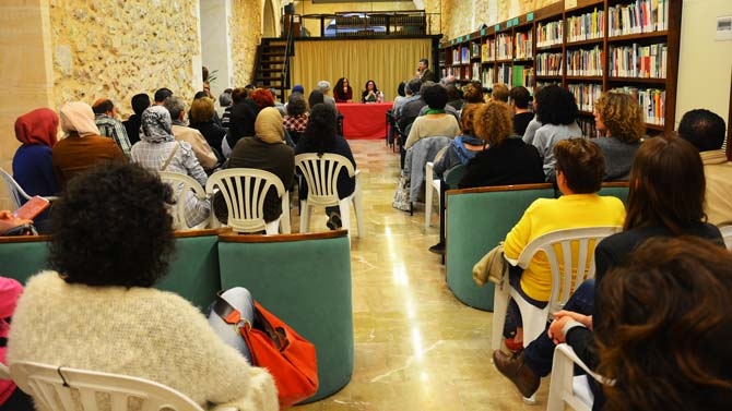 Varias chicas marroquís acudieron a escucharla, quienes con un leve movimiento de sus cabezas afirmaban muchos de los comentarios de la escritora.