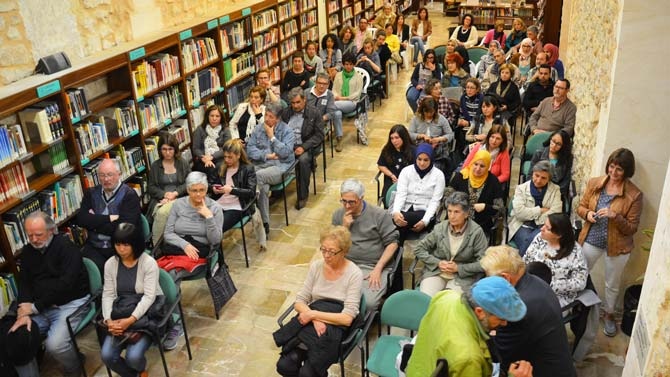 Con la sala repleta de público, Najat repitió experiencia, ya que hace unos años presentó en el mismo lugar su anterior novela. Recordó con unas palabras esa visita, explicando que en esa anterior visita, había en el aforo unas niñas marroquís que habían acudido a escucharla acompañadas de su abuela, un hecho según ella poco frecuente.