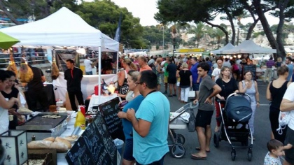 Milers de persones arribades de tota la comarca es varen reunir davall els pins del passeig situat davant la platja per conversar i per veure d'aprop dels novetats que neixen en els tallers dels artesans de Mallorca.
