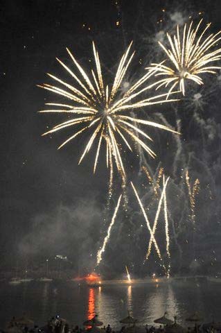 Però va ser el foc l’encarregat de posar el punt i final a les festes. A partir de les 22.30 h els Manafoc convertiren la platja en un mar d’espurnes i de focs de colors que va divertir els més valents. Els focs d’artifici començaren una mica més tard i com cada any les formes brillants dels coets en el cel il•luminaren la badia de Porto Cristo durant la nit en què els veïnats i visitants de Porto Cristo diuen adéu a les festes.