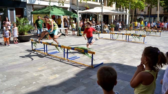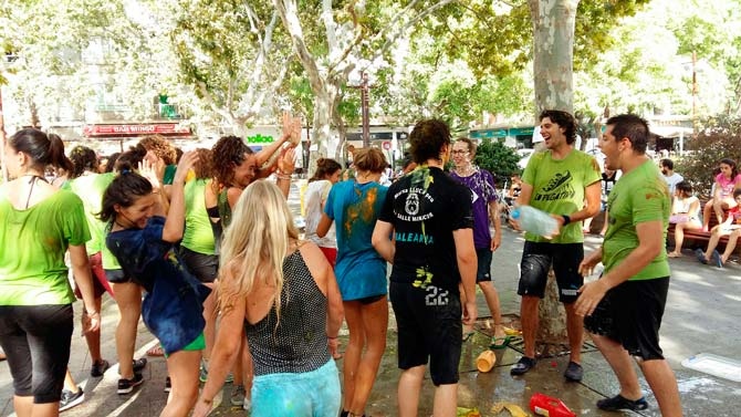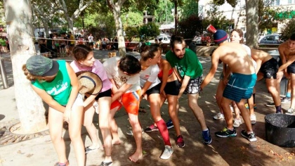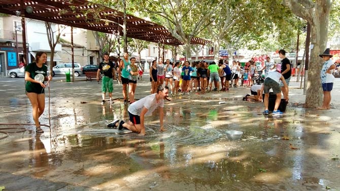 Però ahir la festa va començar molt abans. A les cinc de l'horabaixa els joves de l'associació Xítxeros amb empenta havien transformat la plaça del Mercat en l'escenari de la gimcana bruta d'enguany. Passar-se pomes amb xocolata entre els companys sense utilitzar les mans, jocs d'aigua i activitats a prova de persones fines formaren part de la gimcana més bruta i divertida de les festes.