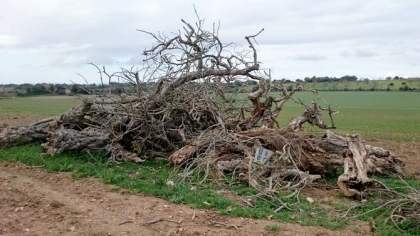 La higuera ha sido y era un árbol vital para los payeses, muchos de ellos alimentaban a los cerdos con estos frutos, siendo también muy importantes para el consumo humano. Pero poco o nada de atención les han prestado a su rápida muerte, ahora solo les queda el fuego y humo, amontonadas y vencidas, no vale la pena ni cortarlas para leña, solo esperan un día soleado para desaparecer, tras una cerilla, sin dejar rastro.