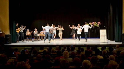 Un teatre ple dels que estimen el ball de pagès aplaudeix l’entrega del Reconeixement de Mèrits a Margalida Fullana