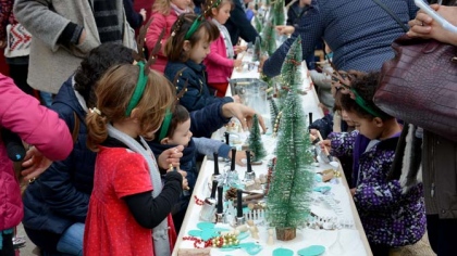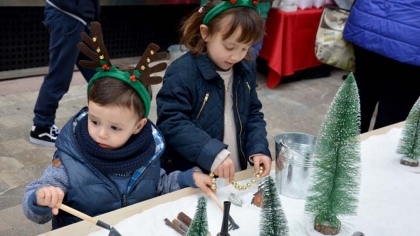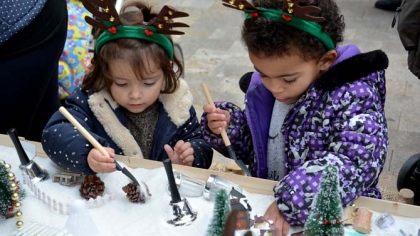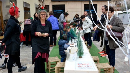 El pasado sábado tuvo lugar en los alrededores de la Iglesia el taller “Juguem amb la neu” registrando una participación impresionante, fueron muchos los niños acompañados de padres, abuelos…, los que se sintieron atraídos por ese taller, disfrutando enormemente de las posibilidades plásticas que se les ofrecían jugando con adornos navideños y especialmente con el efecto de la nieve en los adornos.