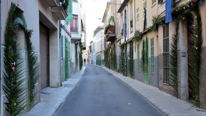 Los frontis de esta céntrica calle de Manacor lucen impresionantes en honor a la fiesta.