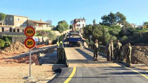 El pont militar provisional que dona accés a Artà (Ma-12) s’ha obert avui matí al trànsit, després d’esfondrar-se el pont que connectava amb el municipi el 9 d’octubre passat.