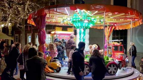 Justo en el centro del mercado un grupo musical amenizó la fría tarde de finales de otoño, poniendo en el aire las notas de sus melodías, provocando junto a las luces y el ambiente, un maravilloso espacio para pasear y soñar.