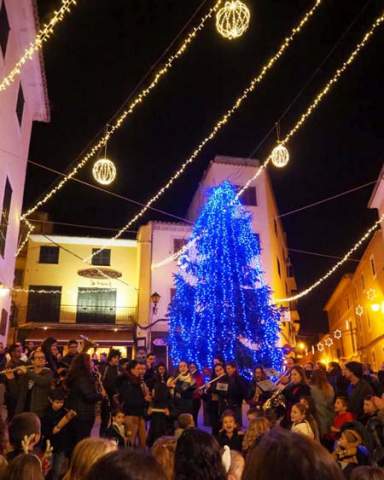 El color blau reina a la plaça de Sant Joan i la Banda Local Son Servera anima l’encesa, la xocolata clalenta ens endolça la nit...
