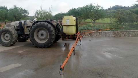 Des de les 19.30h pagesos voluntaris coordinats per l'Ajuntament fan feines de desinfecció per dins Son Macià, s'Illot, Portocristo, Cala Anguila i Cala Mendia.