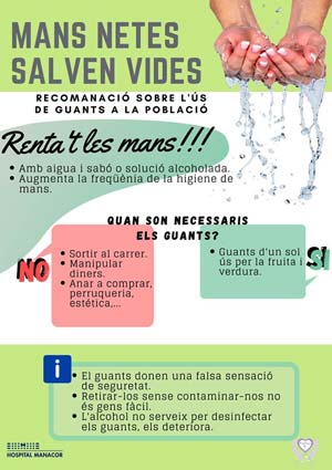 Arran de la reunió duita a terme la setmana passada amb dos membres del grup de control d'infecció de l'Hospital de Manacor, la supervisora infermera d’Esterilitzacio i Control d’Infecció Julia Troya i el metge adjunt de microbiologia Xavier Mesquida, hem acordat establir una col·laboració per difondre missatges de prevenció durant la desescalada.