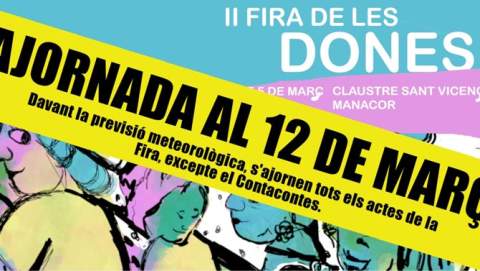 La II Fira de les Dones canvia de data, inicialment prevista pel 5 de març, i a causa de la previsió meteorològica s'ajorna al dissabte 12 de març.