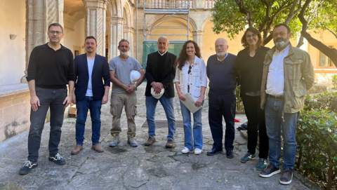 El batle de Manacor, Miquel Oliver; el delegat de Cultura i Patrimoni, Ferran Montero; la delegada d'Urbanisme, Núria Hinojosa; la directora del Museu d'Història, Magdalena Salas; l'arquitecta responsable del projecte, Neus Serra; i altres representants de l'empresa que executa les obres, han presentat els detalls del projecte aquest divendres.