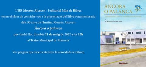 Ahir, dia 21 de maig de 2022, va ser un gran dia. Presentàrem el llibre commemoratiu del 50è aniversari de l’IES Mossèn Alcover, amb gran [...] Leer más...